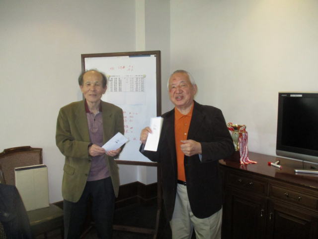 出場したメンバーもそれぞれ故障を抱えての参加が多く、さすがにかつてのスパーショットは少なくなった。 特筆すべきは関西から中塚君が直近の怪我で回れる状況ではないが、パターだけでもみんなと一緒にプレイしようと駆け参じてくれたことである。 いざスタートしてみるとサプライズ、18ホールを完走し、長年培ってきた伎で手堅くまとめて見事に優勝、参加者全員から心からの拍手を浴びた。2位は実力者の宇田君、メーカー賞は腰の故障中の某君が春・秋連続取得。