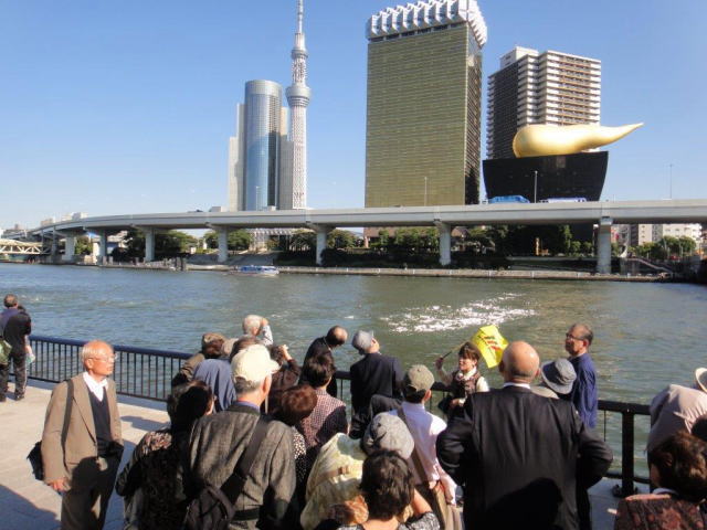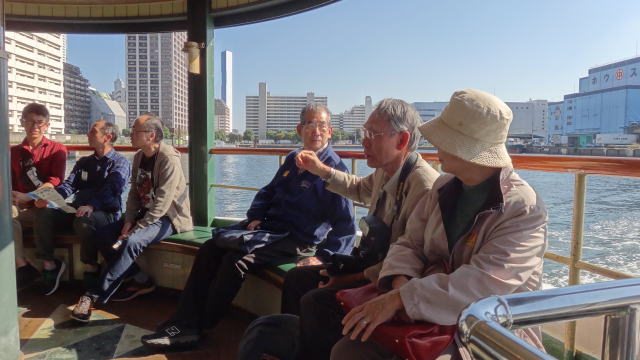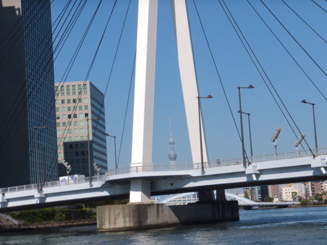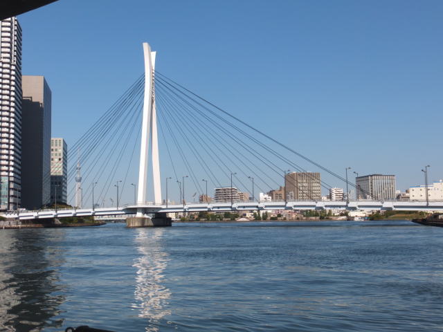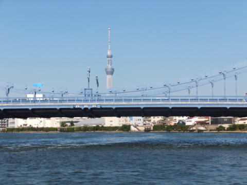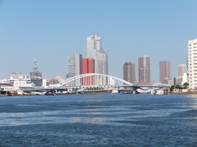 日の出桟橋と浅草の間には12の橋が架けられており、勝鬨橋、清洲橋、吾妻橋など色や形の個性豊かな橋が並んでいます。 名所、旧跡を案内する船内アナウンスに耳を傾け、変貌する東京の姿を隅田川から眺めることができました。