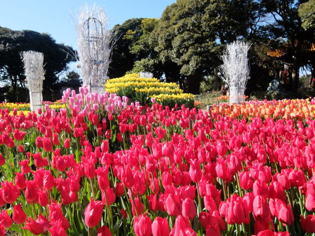 暖冬の影響で湘南では早くも菜の花やチューリップが見頃を迎えています。