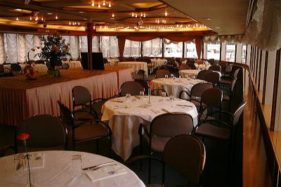 来年の総会予定日と同じ土曜日に下見を実施しましたが、行楽シーズンとあって船内では結婚式も何組かやっており華やいだ雰囲気で日の暮れる頃には桟橋は相当の混雑ぶりでした。 下見の結果全員一致で36会の総会に最適と考えられるパーテールームを確保しました。 十分広い部屋です。