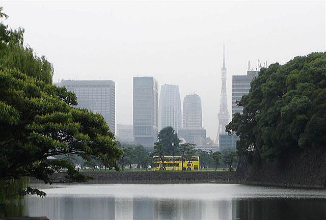 皇居から日比谷、帝国ホテル方面を望む この辺りは家康以前は海だった