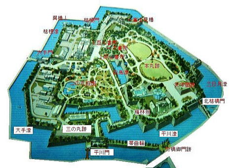 朝一番にまず皇居東御苑を散策しましょう。 二日酔いをふっ飛ばし気分爽快になること請け合いです。 皇居は34万坪の広大な宮城緑地で堂々たる佇まいですが @宮殿(旧西の丸地区) A東御苑(旧天主、本丸、大奥、松の廊下、二の丸、三の丸等江戸城の主要施設があった) B北の丸公園(武道館、科学技術館) C外苑 と大きく分けて4つのブロックに分かれています。
