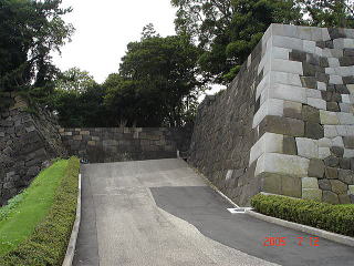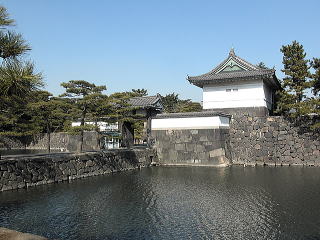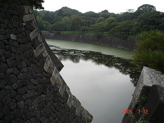北桔橋門と周辺の堀 大田道灌の時代には城の大手だったといわれる。 ここは天守閣、大奥に最も近い重要地点で堀は深く石垣は堅固。 オプションツアー案内 2/3へ オプションツアー案内 3/3へ 45周年記念総会準備委員会事務局
